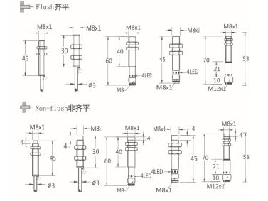 Thread size / 螺紋尺寸: M8屏蔽式 / M8非屏蔽式